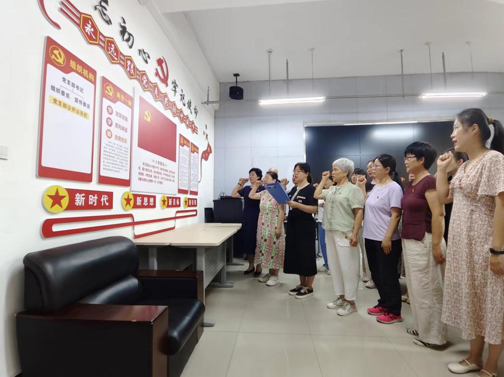 全体党员在刘晓玲的带领下,重温入党誓词。大家佩戴党员徽章、面向党旗、举起右拳、庄严宣誓,“我志愿加入中国共产党,拥护党的纲领……”短短的十二句话,80个字,字字千钧,凝聚了每名共产党人的庄严承诺,指引着全体共产党员的初心使命。